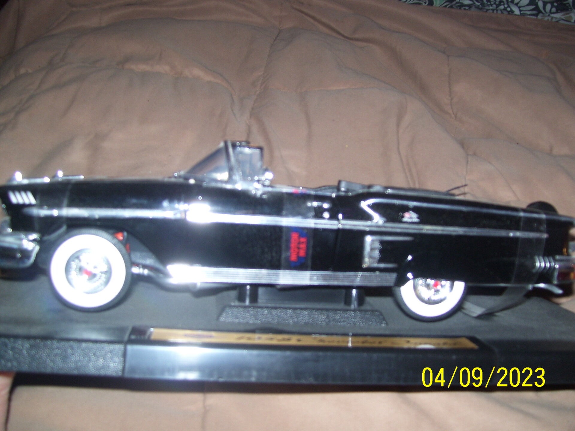 Pictured is a 1958 Chevrolet convertible manufactured by Motor Max.It has a box and veiwing stand but the box isn't in good condition but the car is in perfect condition.